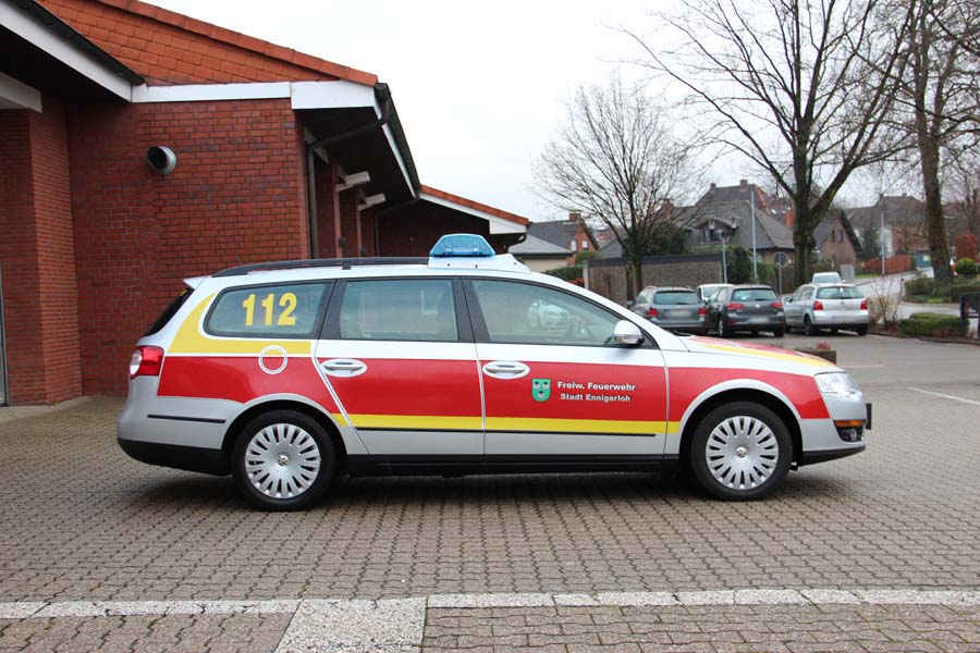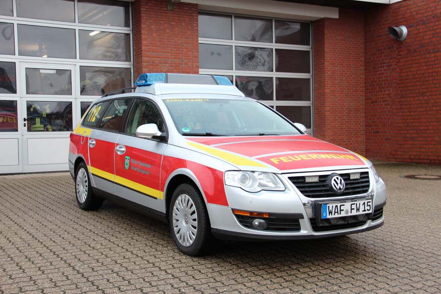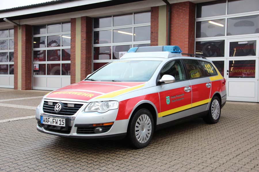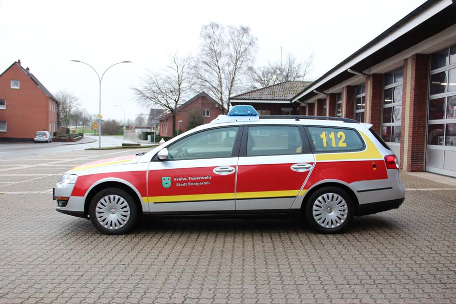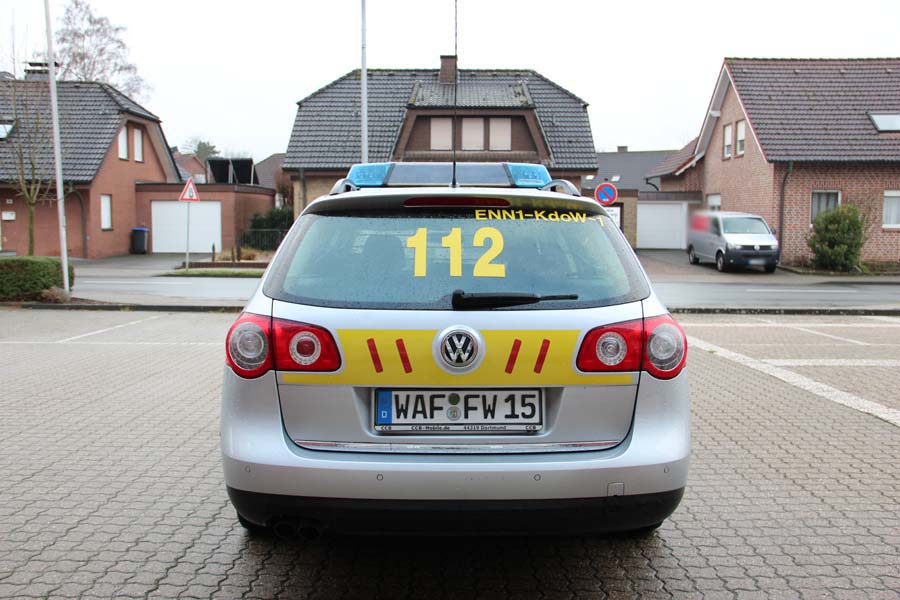 Ein PKW mit einer Ausstattung zum Führen von Feuerwehr-Einheiten wird bei der Feuerwehr Kommandowagen genannt. Auch die Feuerwehr Ennigerloh verfügt über ein derartiges Fahrzeug, das in der Regel vom Leiter der Feuerwehr, seinem Stellvertreter oder einem Verbandsführer genutzt wird, um im Einsatzfall Führungs- und Erkundungsaufgaben übernehmen zu können. Im ersten Leben war unser Kommandowagen übrigens ein Streifenwagen bei der Polizei, eine gewisse Ähnlichkeit lässt sich auch nicht leugnen.