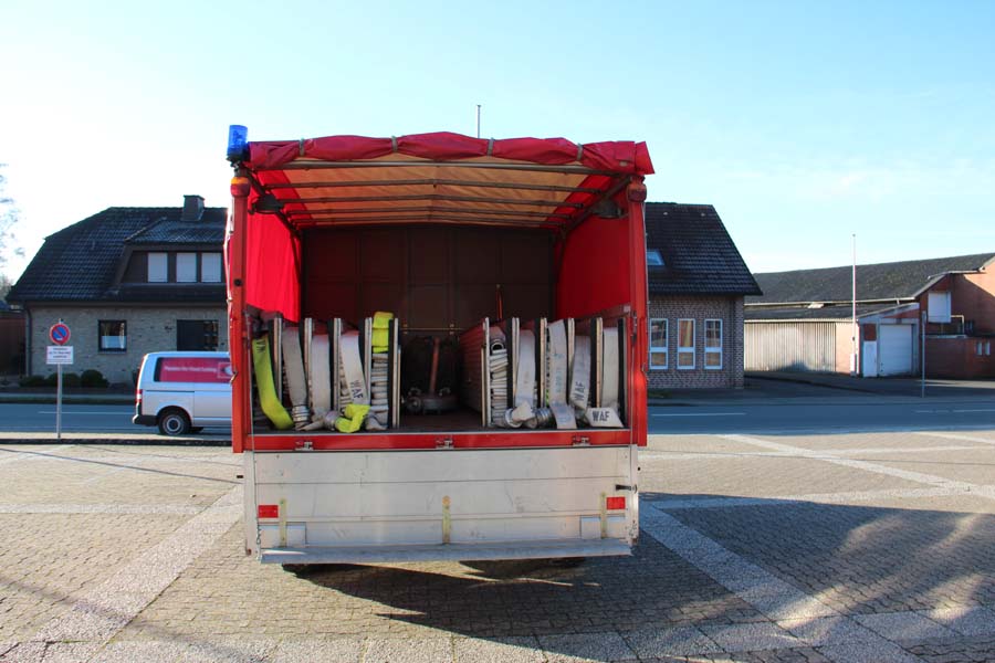 Hierzu sind auf dem Fahrzeug 2.000 Meter B-Schläuche verlastet, 1.800 Meter davon am Stück zum praktischen