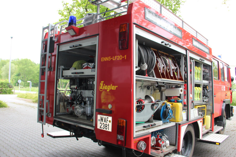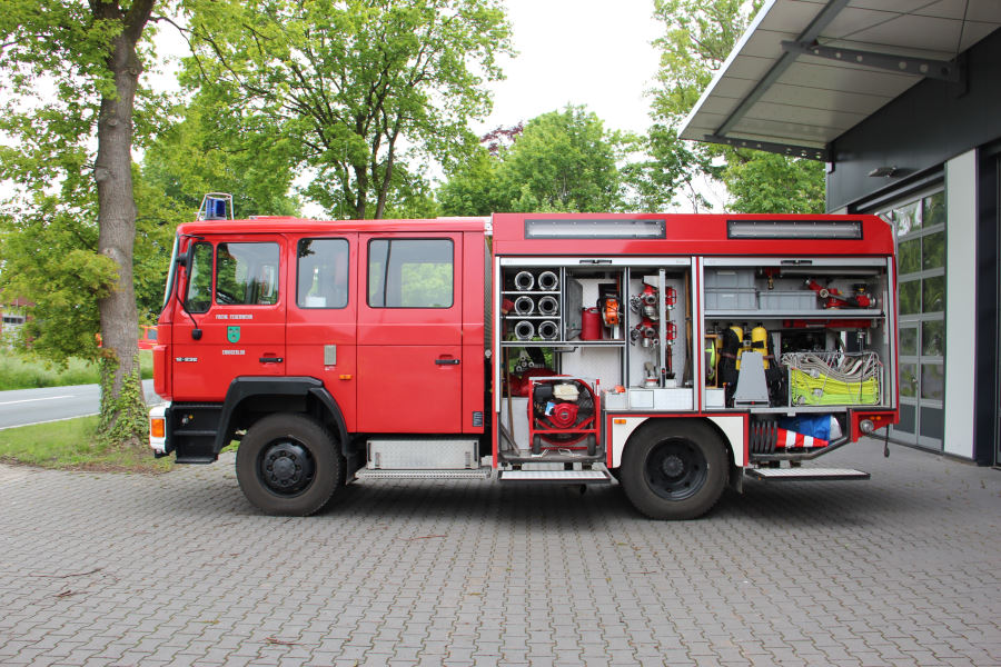 Der Fachmann erkennt es an den auf dem Dach mitgeführten Leitern: das LF 20 am Standort Hoest sieht nicht nur aus wie ein Tanklöschfahrzeug, in Wirklichkeit ist es auch eins. Ursprünglich als Tanklöschfahrzeug – kurz TLF – 16/25 als erstausrückendes Fahrzeug am Standort Ennigerloh in Dienst gestellt, verrichtet es nach einem Fahrzeugtausch aktuell im Löschzug Hoest seinen Dienst. Den sechs Einsatzkräften als Besatzung steht ein mitgeführter Wasservorrat von 2.500 Litern zur Verfügung.