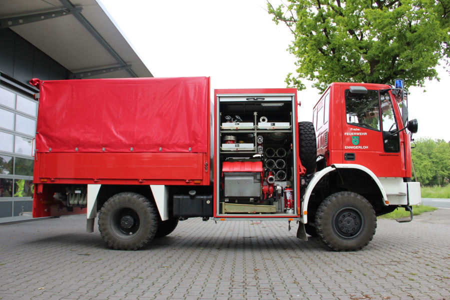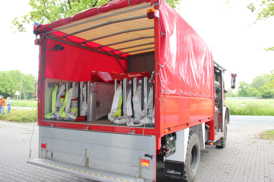 Wenn die Leitung mal etwas länger ist – oder werden soll… Der Schlauchwagen dient zum Aufbau von Schlauchleitungen zur Wasserversorgung, beispielsweise bei Bränden im Außenbereich oder in Industrieanlagen. Hierzu sind auf dem Fahrzeug 2.000 Meter B-Schläuche verlastet, 1.800 Meter davon am Stück zum praktischen Verlegen während der Fahrt. Dieses Fahrzeug aus dem Jahr 1997 wurde uns seinerzeit vom Katastrophenschutz zur Verfügung gestellt, mittlerweile jedoch von der Stadt Ennigerloh übernommen.