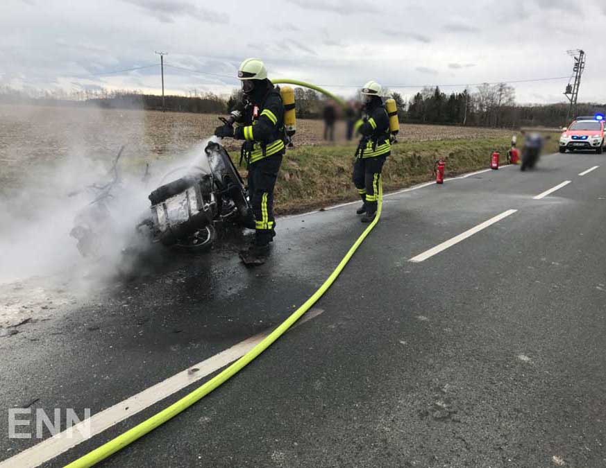 Am Sonntag um 13.30 Uhr wurden Feuerwehr und Rettungsdienst zu einem schweren Verkehrsunfall auf der Landesstraße 792 zwischen Ennigerloh und Oelde gerufen. Dort waren in einer scharfen Kurve zwei Kradfahrer zusammengeprallt. Eine Person zog sich dabei tödliche Verletzungen zu, eine zweite Person wurde schwerst verletzt. Durch den Zusammenprall gerieten beide Motorräder in Brand. Durch die Einsatzkräfte der Feuerwehr wurde das Feuer gelöscht und der Rettungsdienst unterstützt. Gleichzeitig übernahm die Feuerwehr die Absicherung der Unfallstelle sowie die Unterstützung der Polizei bei der Unfallaufnahme und den Aufräumarbeiten. Die schwerstverletzte Person wurde mit dem Rettungshubschrauber Christoph 8 in eine Gelsenkirchener Spezialklinik eingeliefert. Mehrere unverletzte Augenzeugen wurden durch ein Team zur psychosozialen Notfallversorgung zunächst an der Unfallstelle und anschließend im Feuerwehrgerätehaus Hoest betreut. Im Einsatz befanden sich die Löschzüge Hoest und Ennigerloh mit zusammen neun Fahrzeugen, drei Rettungswagen aus Ennigerloh, Oelde und Warendorf, zwei Notärzte aus Oelde und Warendorf sowie der Rettungshubschrauber Christoph 8 aus Lünen. Zusätzlich wurden der Leitende Notarzt sowie der Organisatorische Leiter Rettungsdienst des Kreises Warendorf zur Unfallstelle beordert. Zur Unterstützung der Polizei bei der Unfallaufnahme wurde die Fernmeldeeinheit des Kreises Warendorf mit einer Drohne nachalarmiert. Während der Rettungs- und Aufräumarbeiten wurde die Straße vollständig gesperrt.POL-WAF: Oelde. Motorradfahrer bei Verkehrsunfall tödlich verletzt