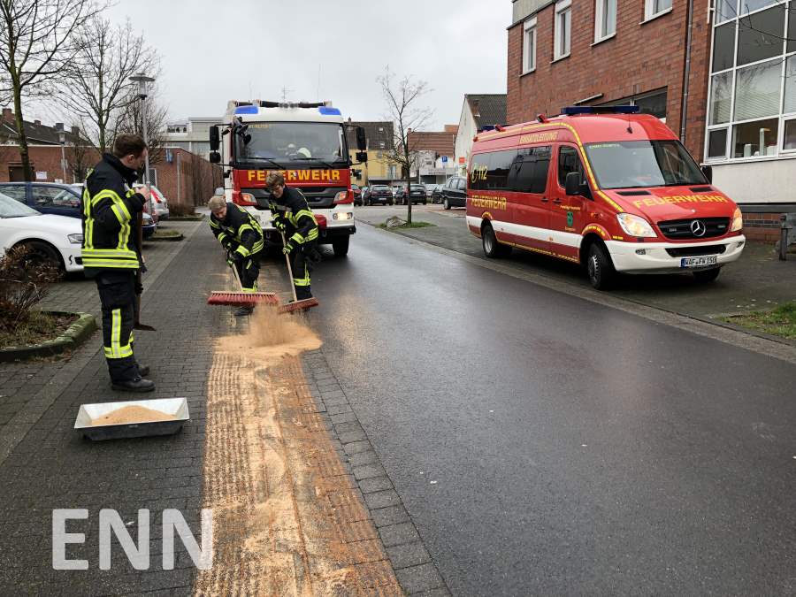 Eine Ölspur, die sich vom Bürgermeister-Frisch-Platz bis zur Vellerner Straße erstreckte, sorgte am Silvestermittag um 12.54 Uhr für einen Einsatz des Löschzuges Ennigerloh. Die Einsatzkräfte waren mit drei Fahrzeugen vor Ort und beseitigten die Gefahrenstellen.