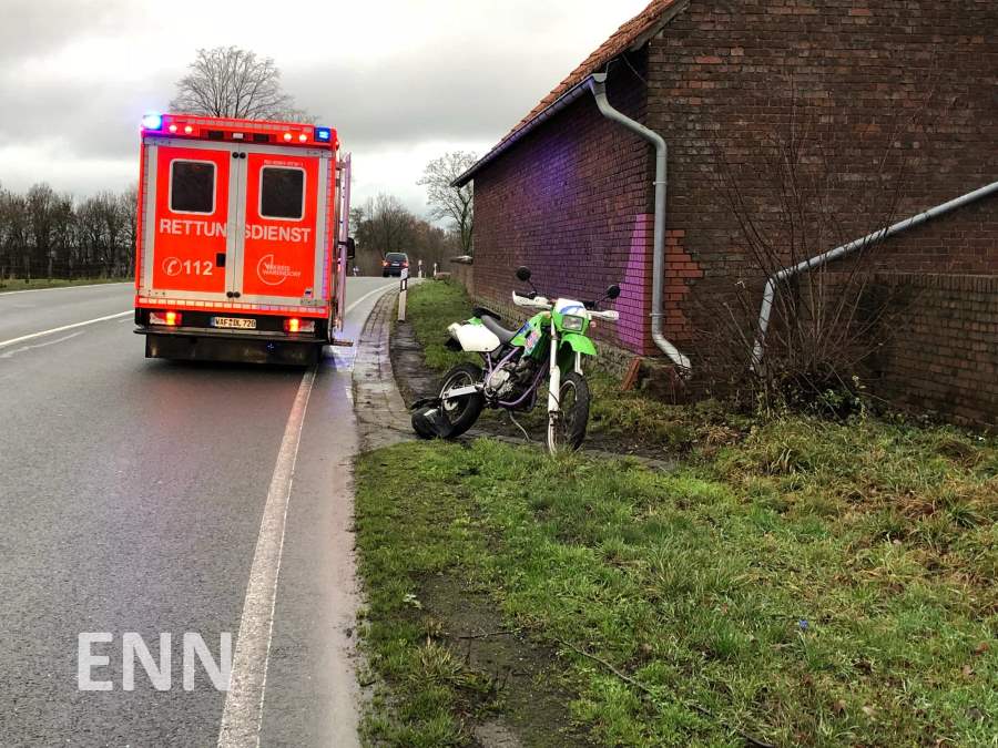 Am Sonntag um 15.59 Uhr wurden Feuerwehr und Rettungsdienst zu einem Verkehrsunfall mit einem Krad auf der B 475 zwischen Ennigerloh und Westkirchen gerufen. Die Einsatzkräfte des Löschzuges Ennigerloh sicherten die Unfallstelle ab und konnten nach kurzer Zeit wieder einrücken. Der verletzte Kradfahrer wurde durch den Rettungswagen aus Ennigerloh in ein Krankenhaus eingeliefert.