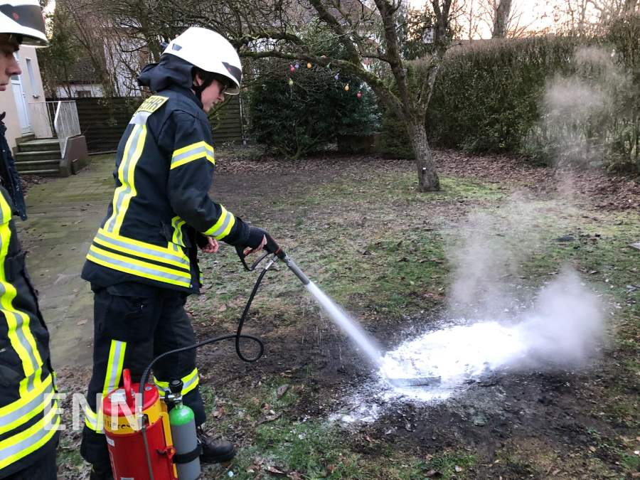 Am Samstag um 16.39 Uhr wurde der Löschzug Ennigerloh zur Neubeckumer Straße gerufen. Dort brannte ein Benzinkanister im Garten eines Wohnhauses. Die Einsatzkräfte löschten das Feuer mit einem Kleinlöschgerät ab und konnten den Einsatz nach kurzer Zeit beenden. Personen kamen glücklicherweise nicht zu Schaden.