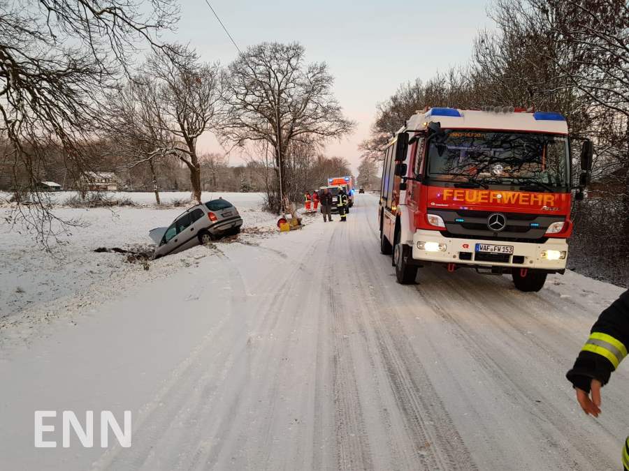 Am Donnerstagmorgen ereignete sich auf der Straße Zum Hohen Kreuz ein Verkehrsunfall, bei dem ein mit sechs Personen besetztes Fahrzeug in den Graben rutschte. Um 7.45 Uhr rückte der Löschzug Ostenfelde gemeinsam mit der First Responder Gruppe und dem Rettungsdienst zur Unfallstelle aus. Vor Ort wurde die Unfallstelle abgesichert und der Rettungsdienst unterstützt.