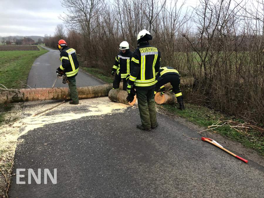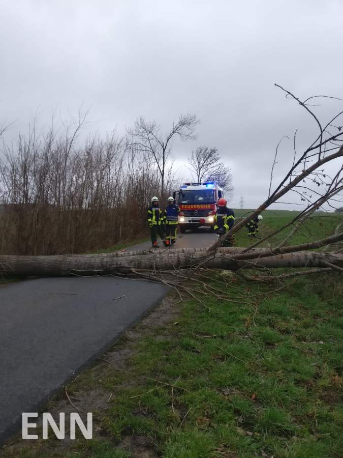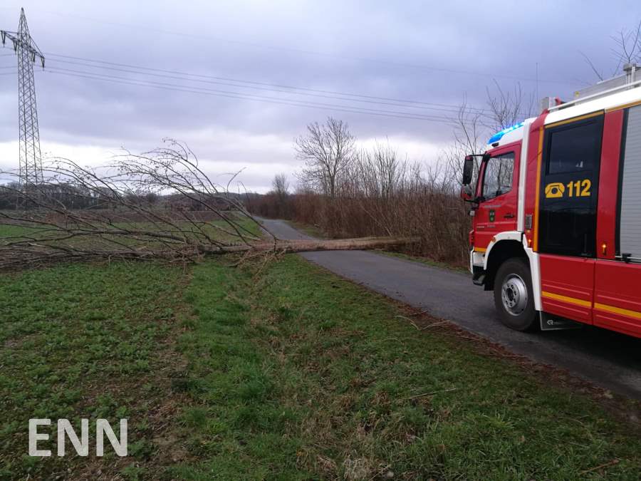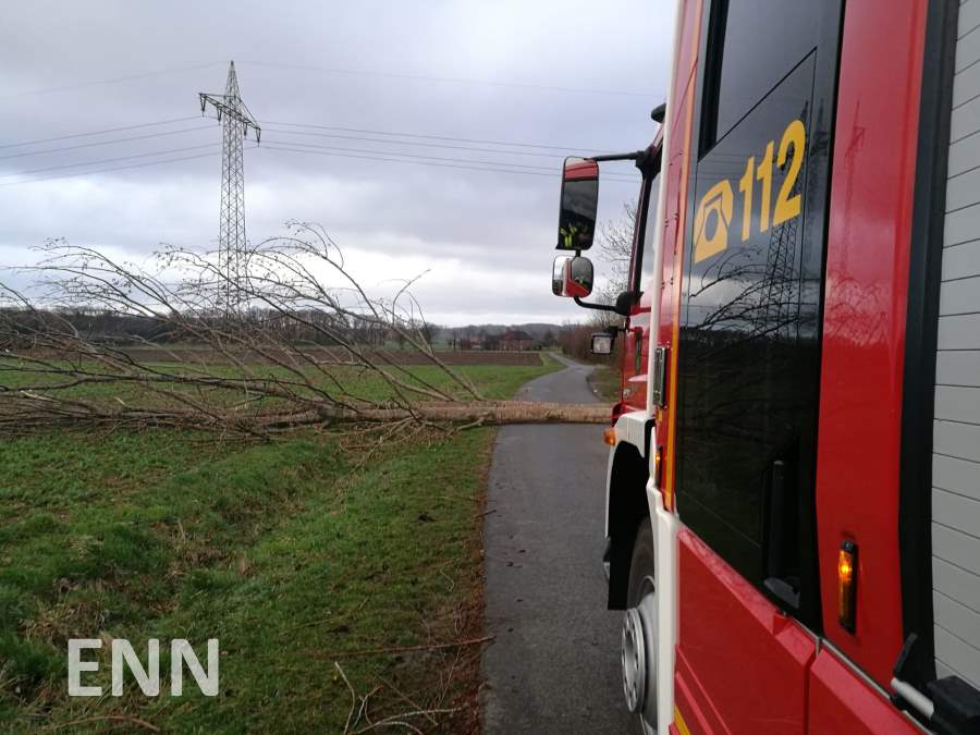 Auch an Ennigerloh ist das Sturmtief „Eberhard“ am Sonntag nicht spurlos vorübergegangen. Um 16.15 Uhr wurde die Feuerwehr zum ersten Einsatz gerufen, zwei weitere folgten im Verlauf des Abends. Im Bereich des Amselweges und am Wendsberg stürzten zwei Bäume um und versperrten die Fahrbahn, im Einmündungsbereich Clemens-August-Straße / Elmstraße drohten Dachpfannen auf den Gehweg zu stürzen. Insgesamt waren 22 Kräfte mit drei Fahrzeugen des Löschzuges Ennigerloh im Einsatz. Für den Fall, dass weitere Einsätze im Stadtgebiet angefallen wären, wurde der Einsatzleitwagen am Feuerwehrgerätehaus Ennigerloh in Betrieb genommen und diente damit der Koordinierung. Um 18.30 Uhr waren alle Gefahrenstellen beseitigt. Aufgrund des nachlassenden Sturms wurde die Einsatzbereitschaft wieder aufgehoben.