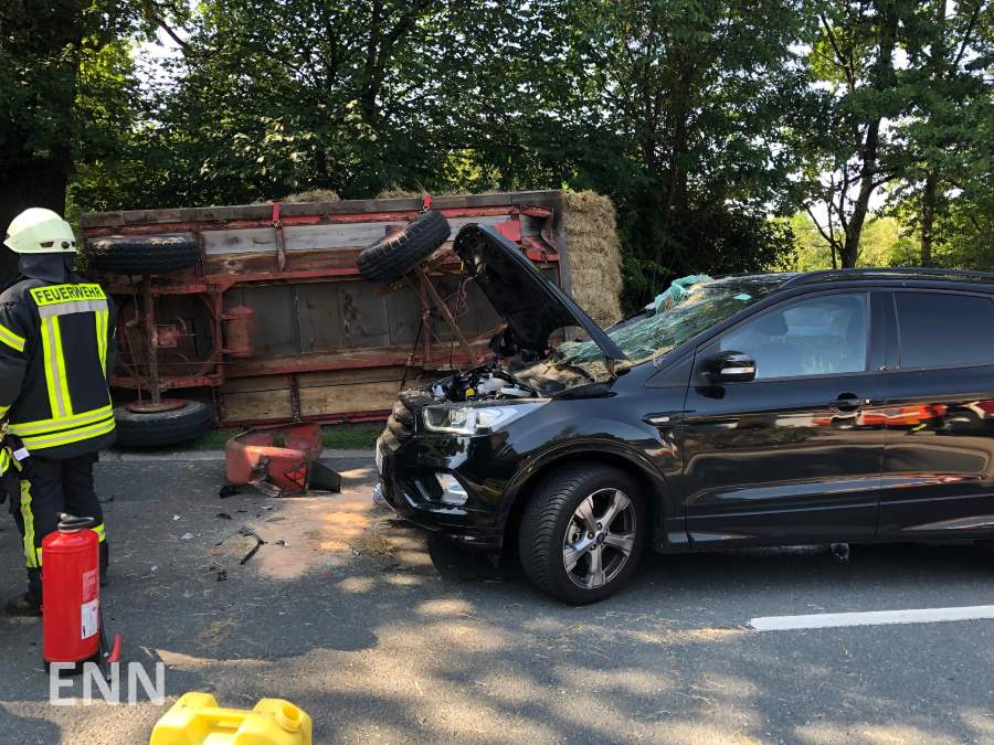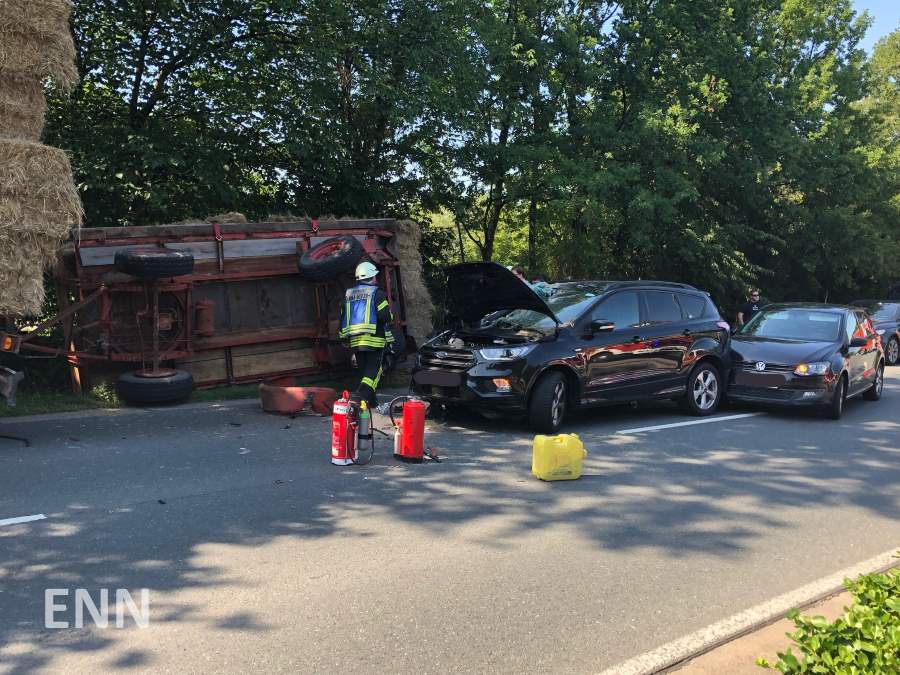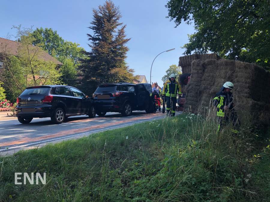 am Mittwoch um 15.20 Uhr wurden Feuerwehr und Rettungsdienst zu einem Verkehrsunfall auf der B 475 gerufen. Am Ortseingang aus Richtung Warendorf war es zum Zusammenstoß von zwei PKW und einem landwirtschaftlichen Gespann gekommen. Dabei wurden vier Personen leicht verletzt. Entgegen der ersten Meldung brannte beim Eintreffen der Feuerwehr keines der Unfallfahrzeuge. Die Einsatzkräfte unterstützten den Rettungsdienst und sicherten die Unfallstelle ab. Die vier Verletzten, darunter ein Kleinkind, wurden durch den Rettungsdienst in die Krankenhäuser Warendorf und Ahlen eingeliefert. Im Einsatz befanden sich die Löschzüge Westkirchen und Ennigerloh mit sieben Fahrzeugen, drei Rettungswagen aus Ennigerloh, Warendorf und Beelen sowie ein Notarzt aus Warendorf.