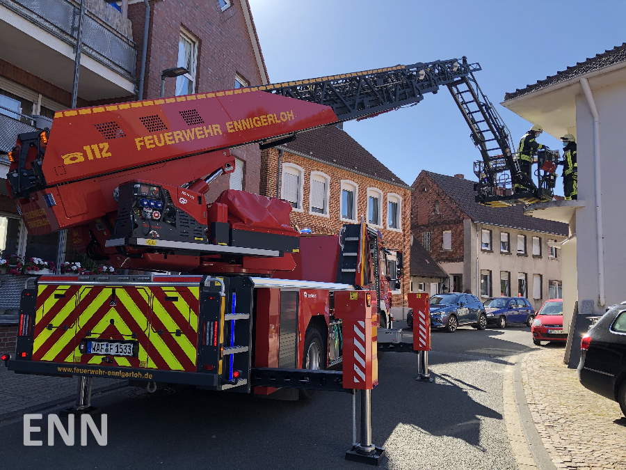 Am Montag um 08.58 Uhr rückte der Löschzug Ennigerloh zum Haferknapp aus, um den Rettungdienst mit der Drehleiter bei einer Menschenrettung zu unterstützen.