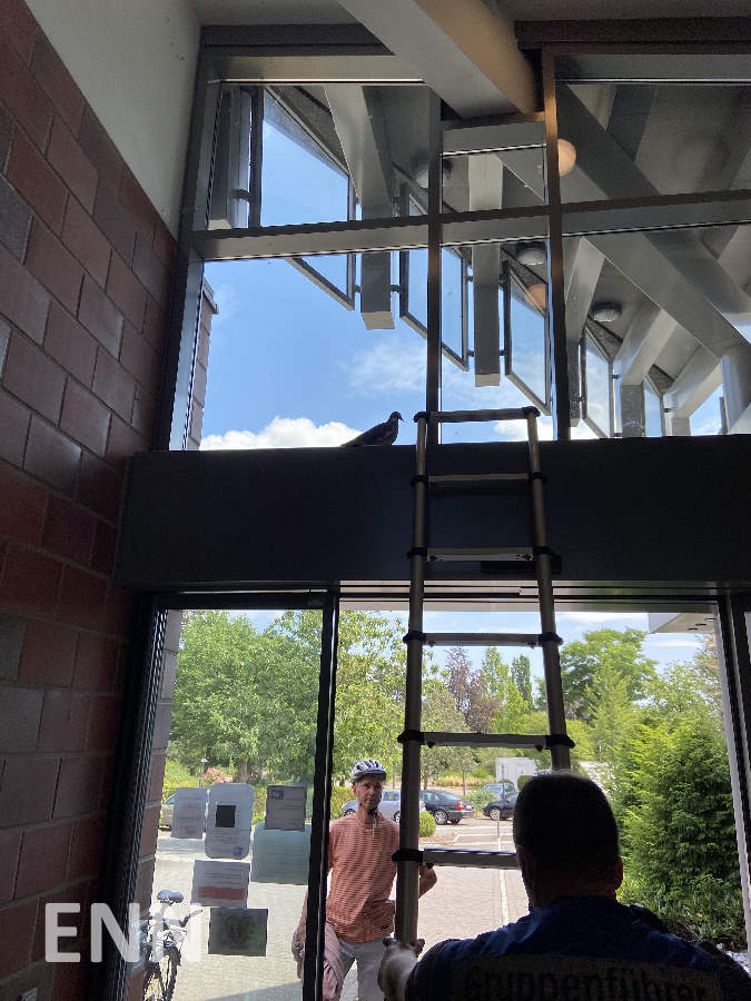 Der zweite Einsatz am Samstag führte die Einsatzkräfte des Löschzuges Ennigerloh in ein Geldinstitut an der Bahnhofstraße. In den Vorraum hatte sich eine Taube verirrt. Sie wurde von den Einsatzkräften gefangen und an die Freiheit übergeben.