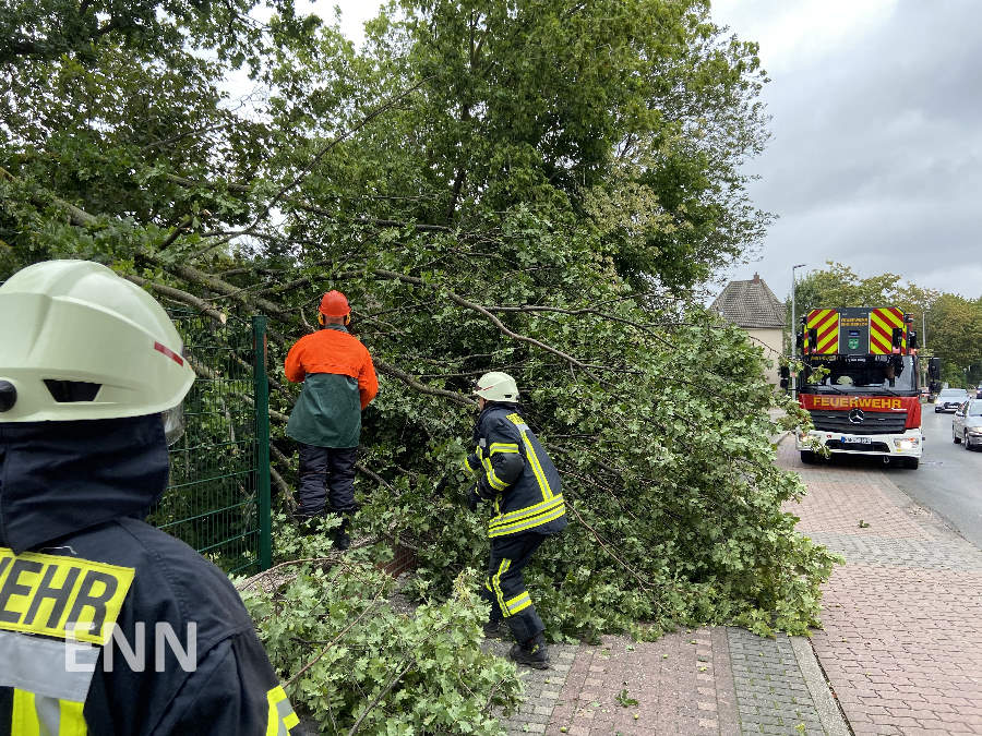 Auch an der Neubeckumer Straße sorgten die Sturmböen am Mittwoch für einen Einsatz der Feuerwehr. Hier musste ebenfalls ein Teil eines Baumes beseitigt werden.