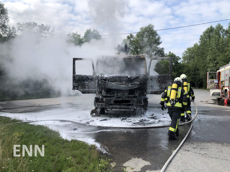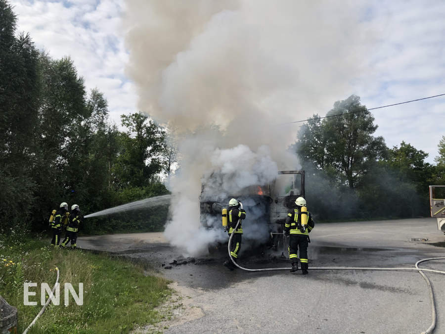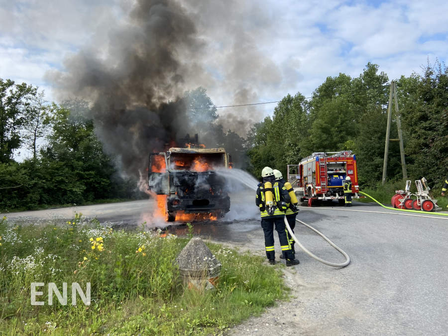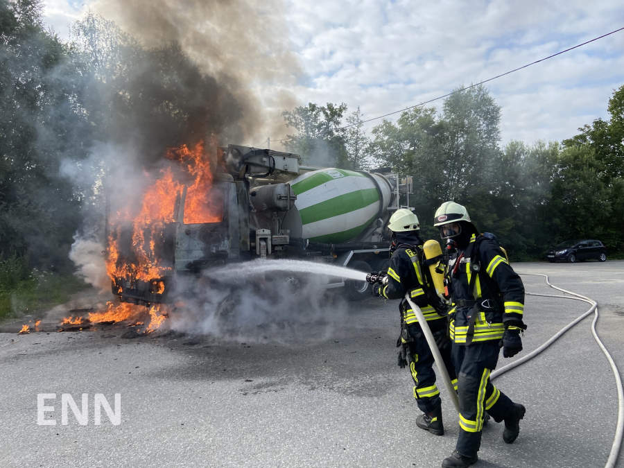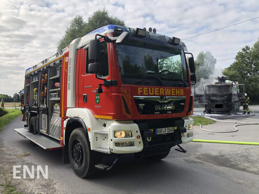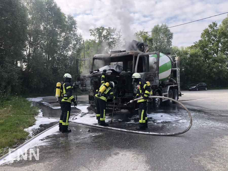 Am Dienstag um 09.02 Uhr wurden die Löschzüge Westkirchen und Ennigerloh zu einem LKW-Brand auf der Bundesstraße 475 zwischen Westkirchen und Warendorf gerufen. Die ersten eintreffenden Kräfte fanden einen brennenden Betonmischer auf dem Parkplatz am Sportplatz vor. Zur Brandbekämpfung wurden mehrere Einsatzkräfte unter Atemschutz eingesetzt. Durch den schnellen Löschangriff konnte ein Übergreifen der Flammen vom bereits in Vollbrand stehenden Fahrerhaus auf das übrige Fahrzeug verhindert werden. Personen kamen glücklicherweise nicht zu Schaden. Die Wasserversorgung wurde unter anderem durch das neue Tanklöschfahrzeug des Löschzuges Ennigerloh sichergestellt. Die ausgelaufenen Betriebsstoffe konnten durch die Feuerwehr aufgefangen und somit ein Umweltschaden erfolgreich abgewendet werden. Zur Entsorgung wurde eine Fachfirma hinzugezogen. Gegen 11.20 Uhr wurde der Einsatz beendet. Im Einsatz befanden sich die Löschzüge Westkirchen und Ennigerloh mit zusammen acht Fahrzeugen, hinzu kam der Rettungswagen aus Warendorf..