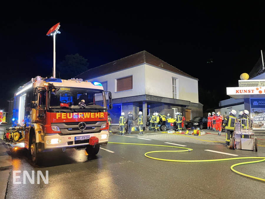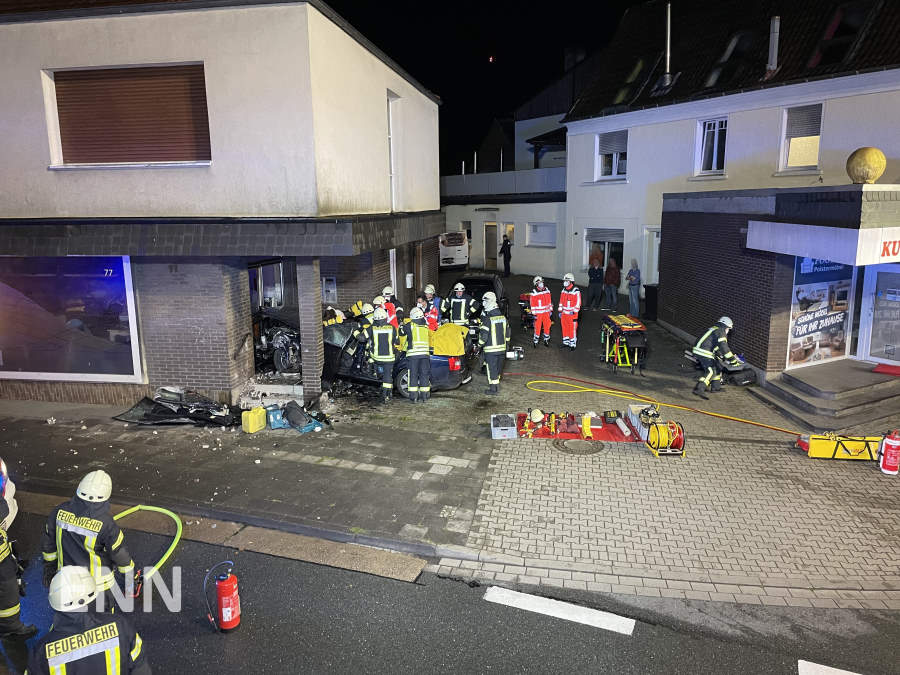 Am frühen Samstagmorgen um 00.58 Uhr wurden Feuerwehr und Rettungsdienst zu einem schweren Verkehrsunfall auf der Warendorfer Straße in Westkirchen gerufen. Ein PKW war dort von der Fahrbahn abgekommen und gegen ein Gebäude geprallt. Eine Person wurde dabei schwer verletzt im Fahrzeug eingeklemmt, eine weitere Person ebenfalls schwer verletzt. Eine dritte Person hat sich vor Eintreffen der ersten Kräfte von der Unfallstelle entfernt. Durch die Feuerwehr wurde die Unfallstelle abgesichert und die eingeklemmte Person mit hydraulischen Rettungsgeräten befreit. Die beiden Verletzten wurden anschließend durch den Rettungsdienst in Münsteraner Kliniken eingeliefert. Im Einsatz befanden sich die Löschzüge Westkirchen und Ennigerloh mit insgesamt sechs Fahrzeugen.