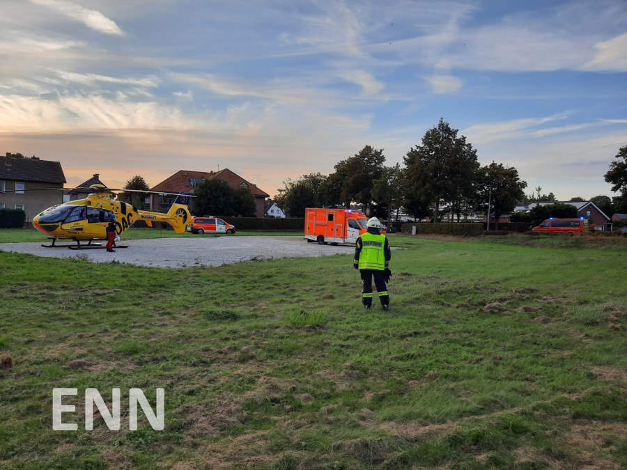 Am Dienstagabend ereignete sich auf der Ostenfelder Straße ein Verkehrsunfall zwischen einer Radfahrerin und einem PKW. Der Löschzug Ennigerloh wurde um 18.00 Uhr alarmiert, um die Landung eines vom Rettungsdienst nachgeforderten Rettungshubschraubers abzusichern.