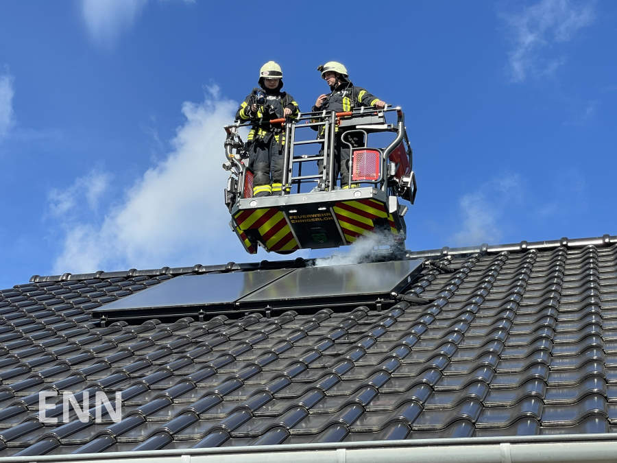 Am Donnerstag um 11.26 Uhr rückten die Löschzüge Ennigerloh und Ostenfelde erneut zur Ludwigstraße aus. Dort war eine Rauchentwicklung an der am Vortag vom Blitzeinschlag betroffenen Solaranlage festgestellt worden. Eine genauere Erkundung mittels Drehleiter bestätigte, dass es sich hierbei lediglich um Dampf durch den technischen Defekt an der Anlage handelte. Ein weiteres Eingreifen der Feuerwehr war daher nicht erforderlich.